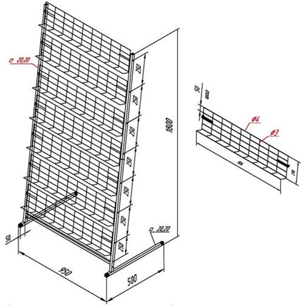 П-7 Стойка 7 наклонных полок, усиленная. 1800*500*950мм. Цвет: Белый