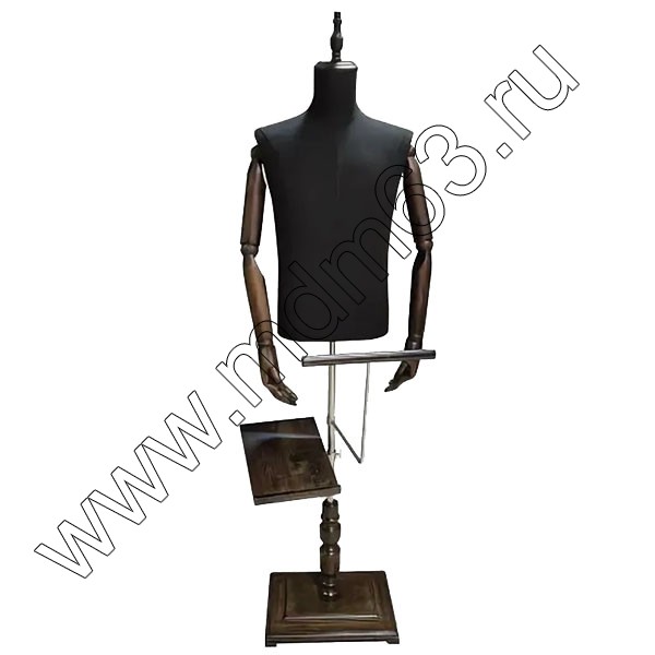 PPM-02 Манекен мужской, с шарнирными руками, держателям обуви и брюк. Цвет: Чёрный+тёмное дерево
